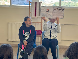 Os nenos e nenas de 1º puideron gozar da visita de Ramón D. Veiga, o escritor de "Chove", o libro que leron e que tanto lles gustou.